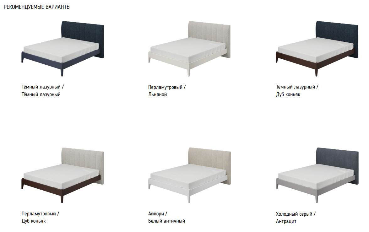 Доступные цвета: комбинации цвета изголовья и царги