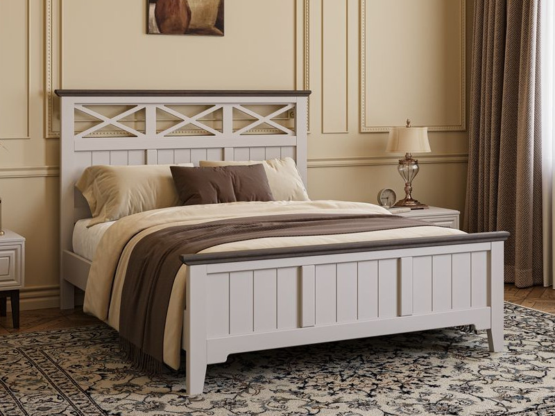 - Кровать Грация-5 1600 Льняной с карнизом Дуб коньяк