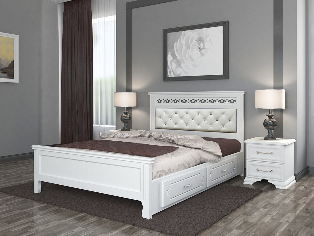 - Кровать Грация с 2-мя ящиками 1400 Белый античный