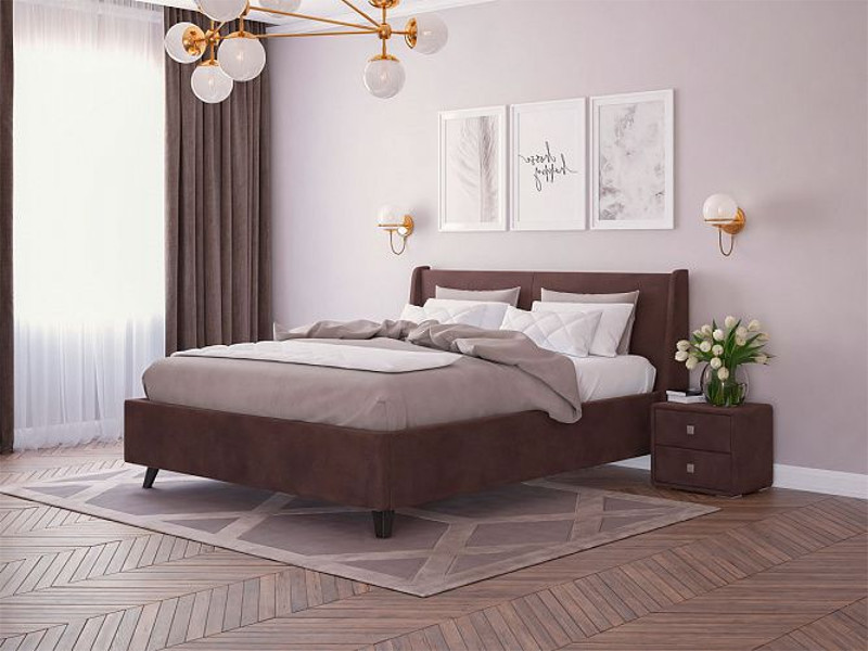 - Кровать Лорен с ПМ 1600х2000 мм микровелюр шоколад