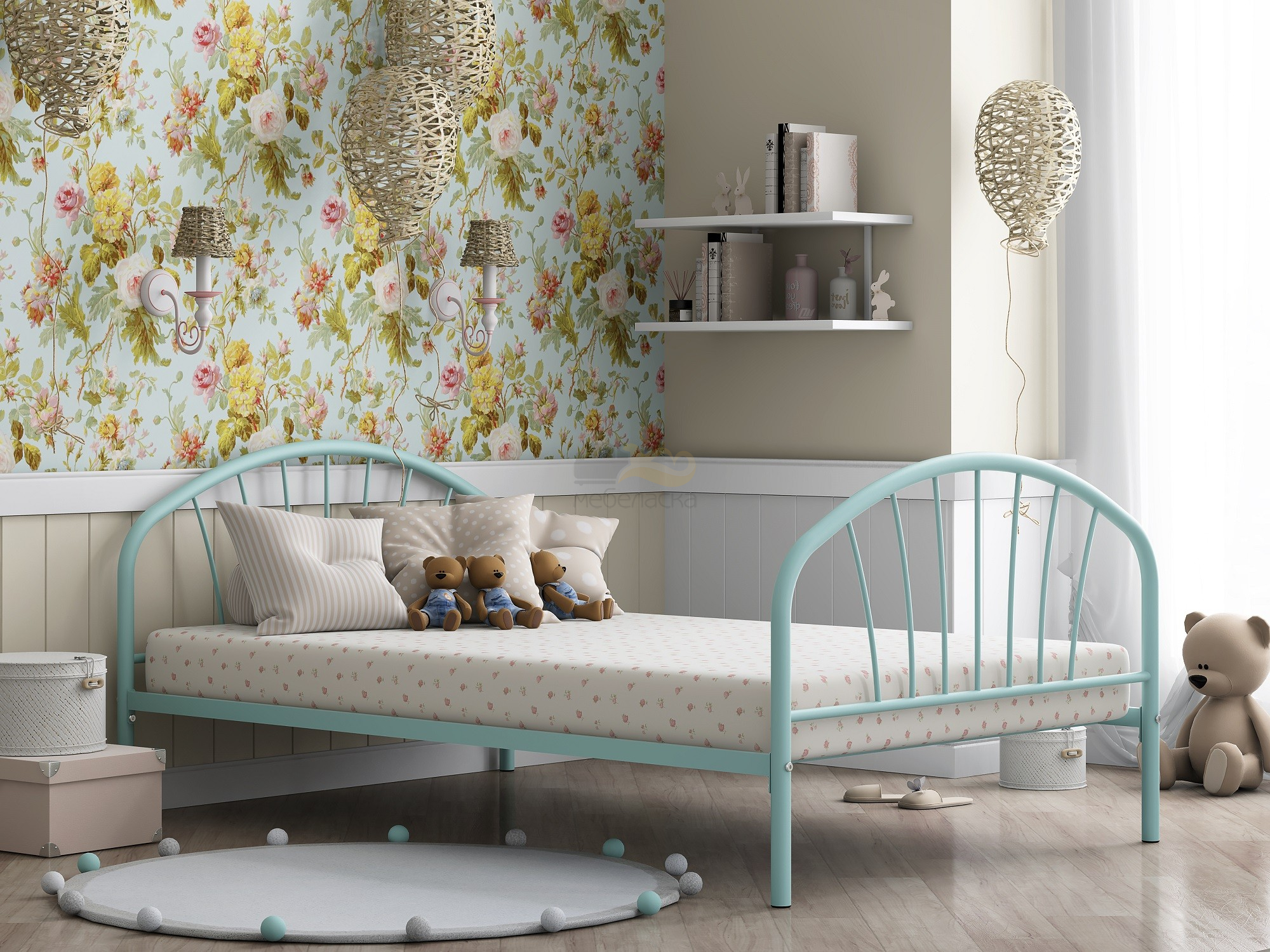 - Кровать металлическая Эвора 120 Бирюзовый