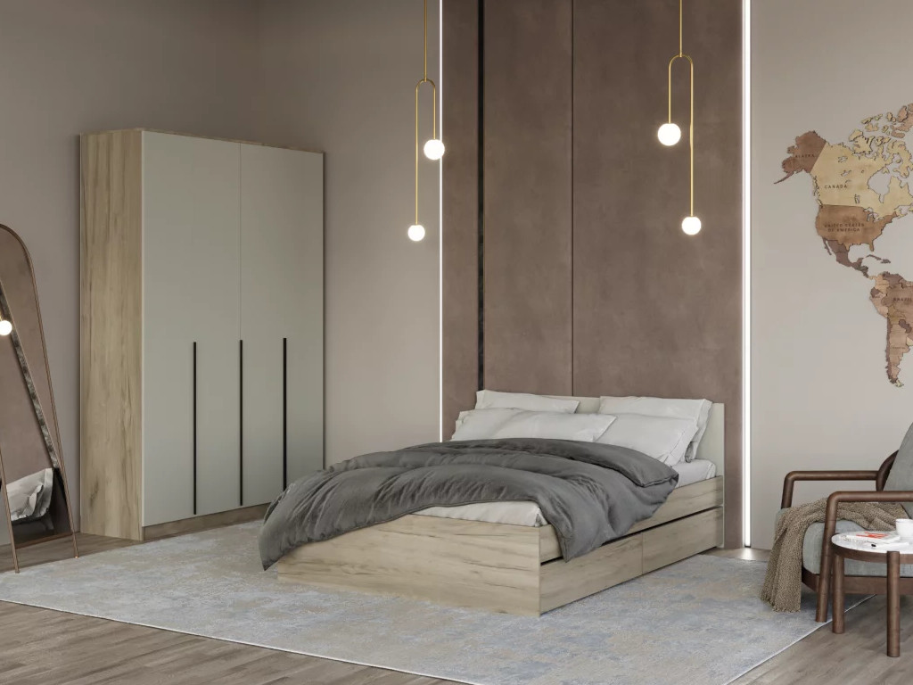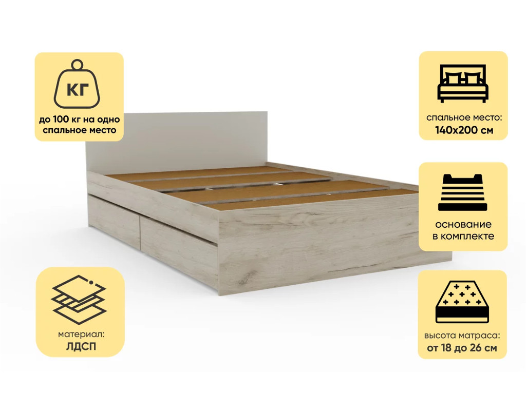 - Кровать Монблан с ящиками 140х200 см Кашемир