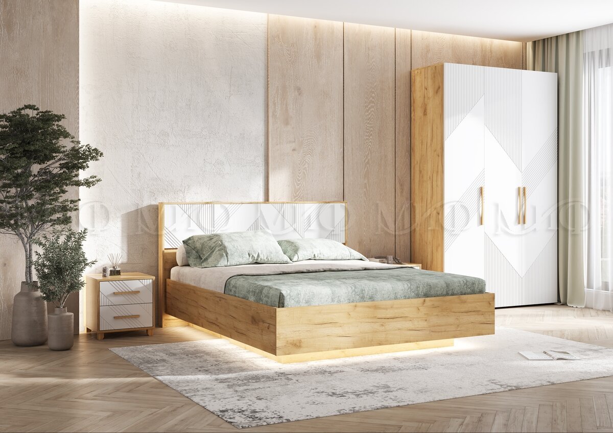 - Кровать парящая 1600 Ирис (ортопед металл) Браш Вайт/Дуб Крафт