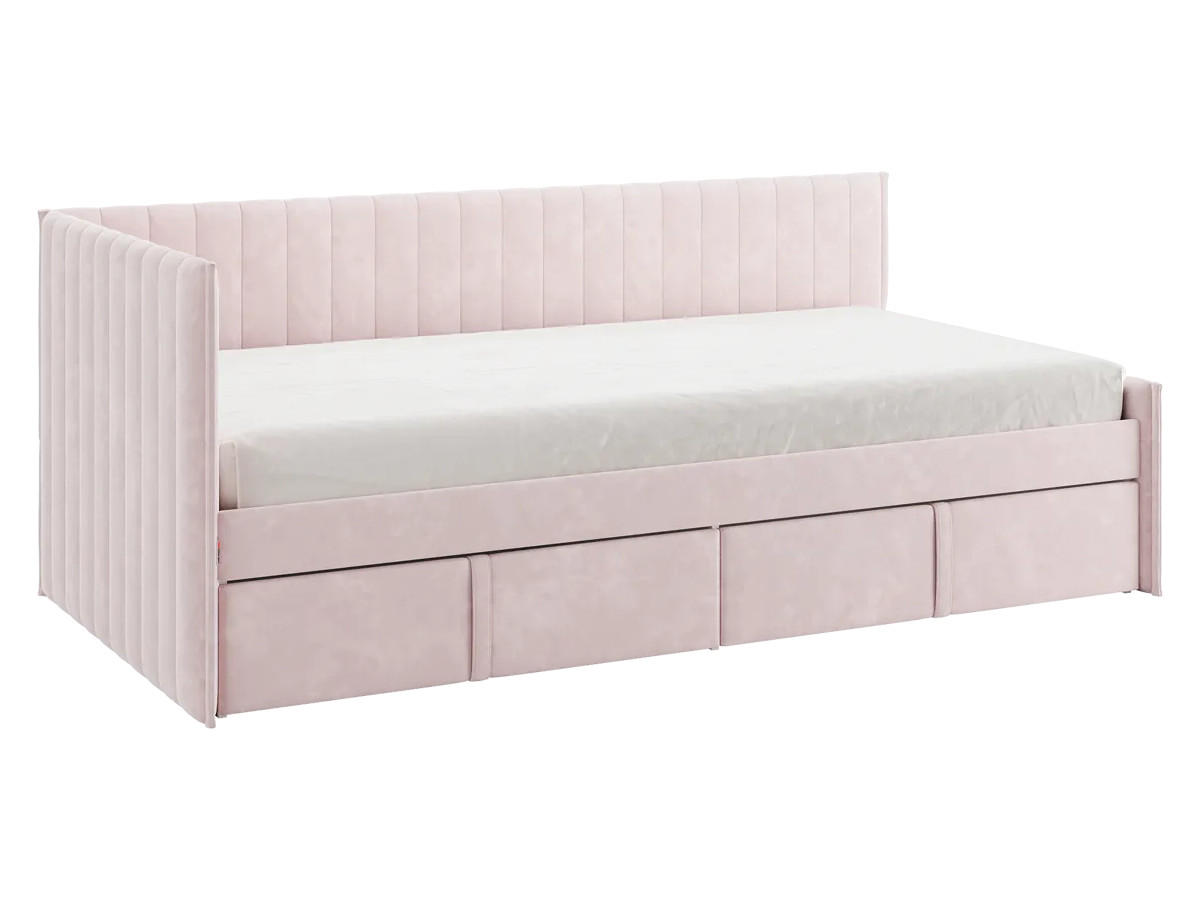 Кровать-тахта с ящиками Твикс цвет велюра нежно-розовый