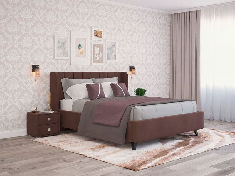 - Кровать Виола с ПМ 1400х2000 мм микровелюр шоколад
