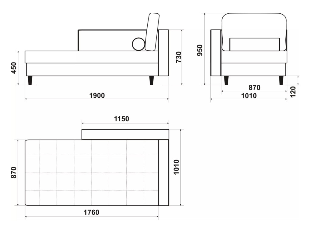 Размеры дивана (мм): 1900*1010*950