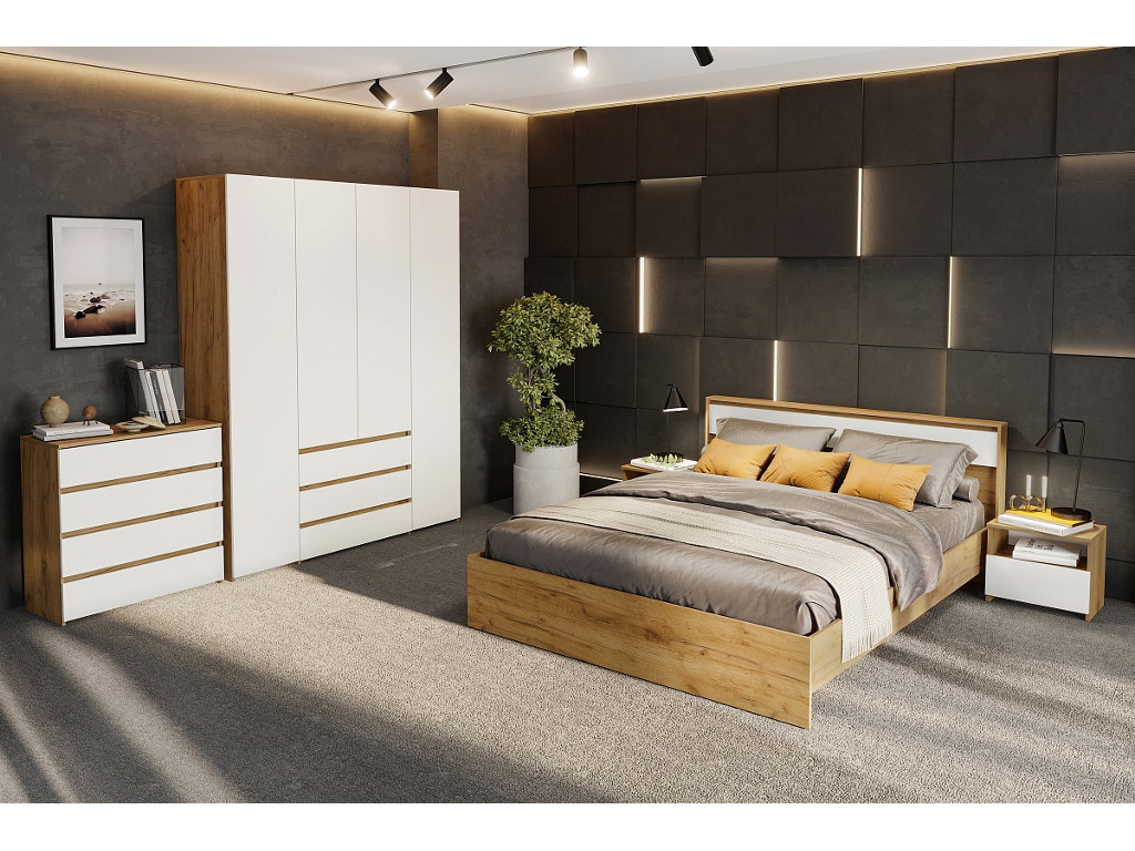 Спальня Некст 1 Дуб Золотой/Белый
