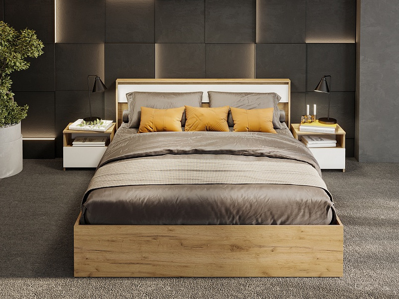 - Спальня Некст 1 Дуб Золотой/Белый
