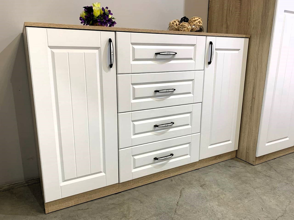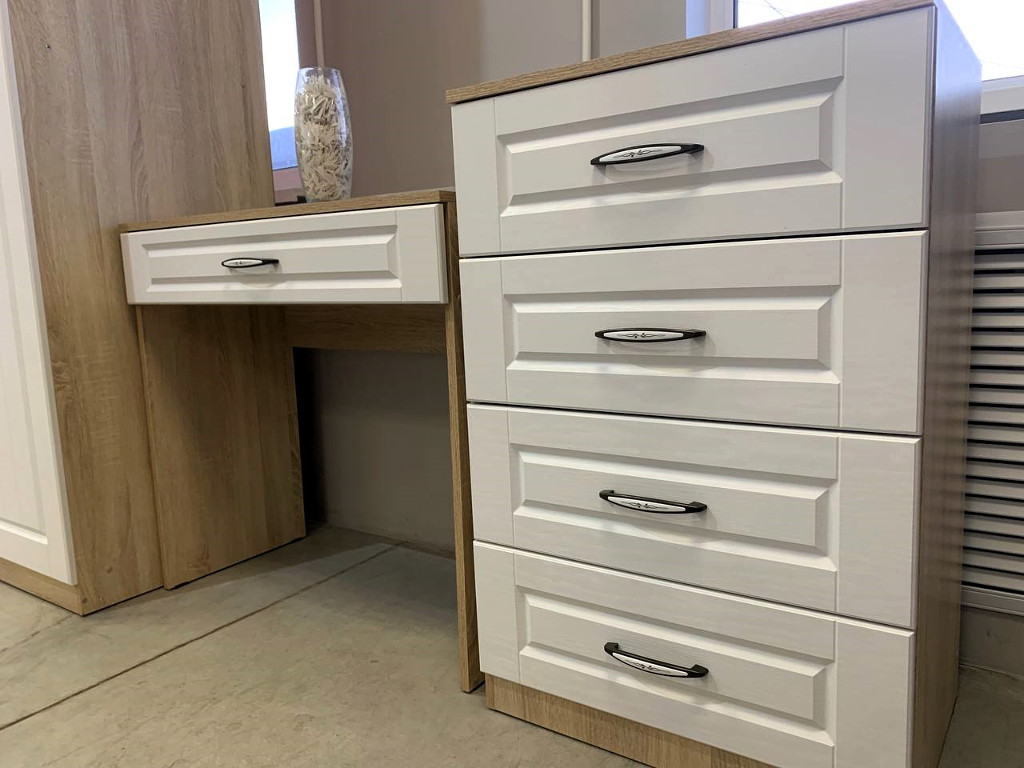 Состав комплекта: тумба прикроватная (2шт), кровать-1400, основание 1400, опоры для основания, шкаф 4-х створчатый, стол туалетный