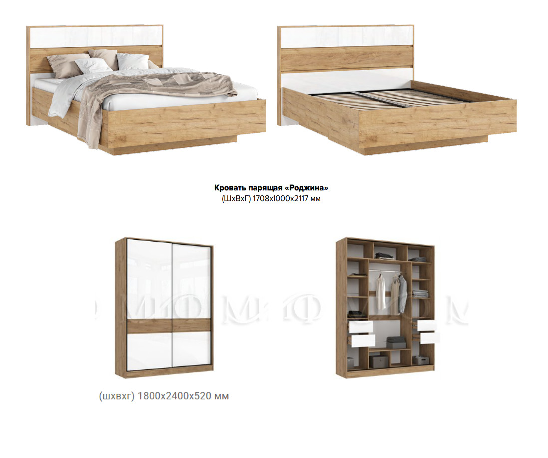 Цена за комплект: Шкаф-купе (1800), Кровать парящая 1,6м (ортопед дерево)