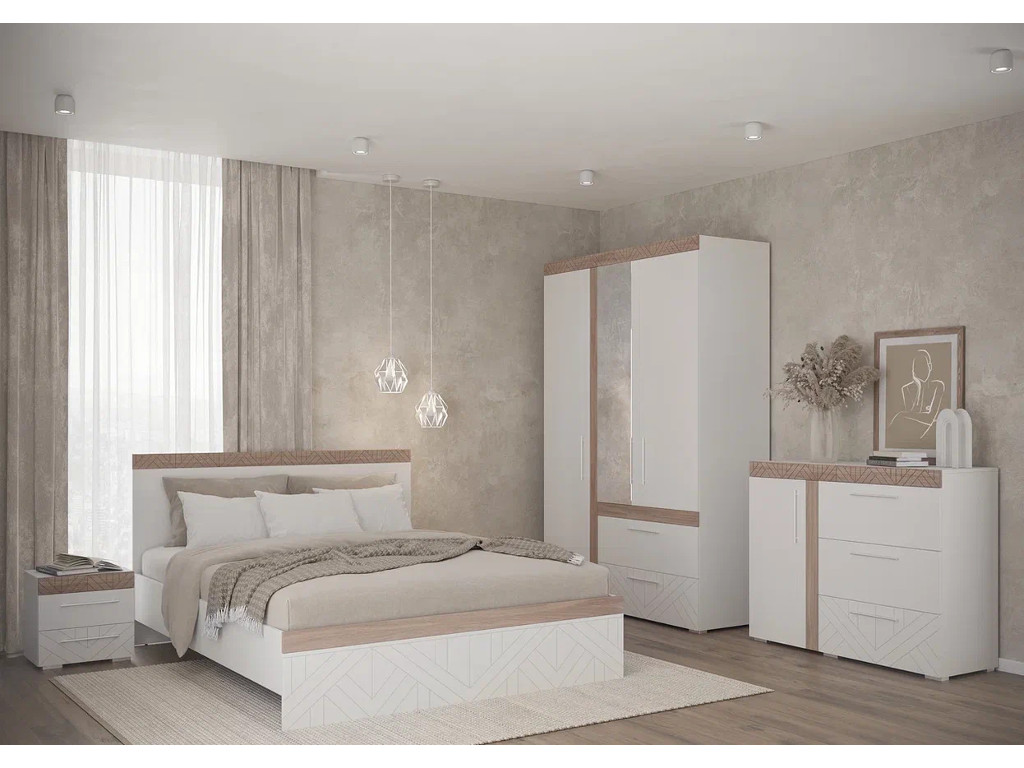 Цена за комплект: Тумба прикроватная, Кровать, Комод, Шкаф