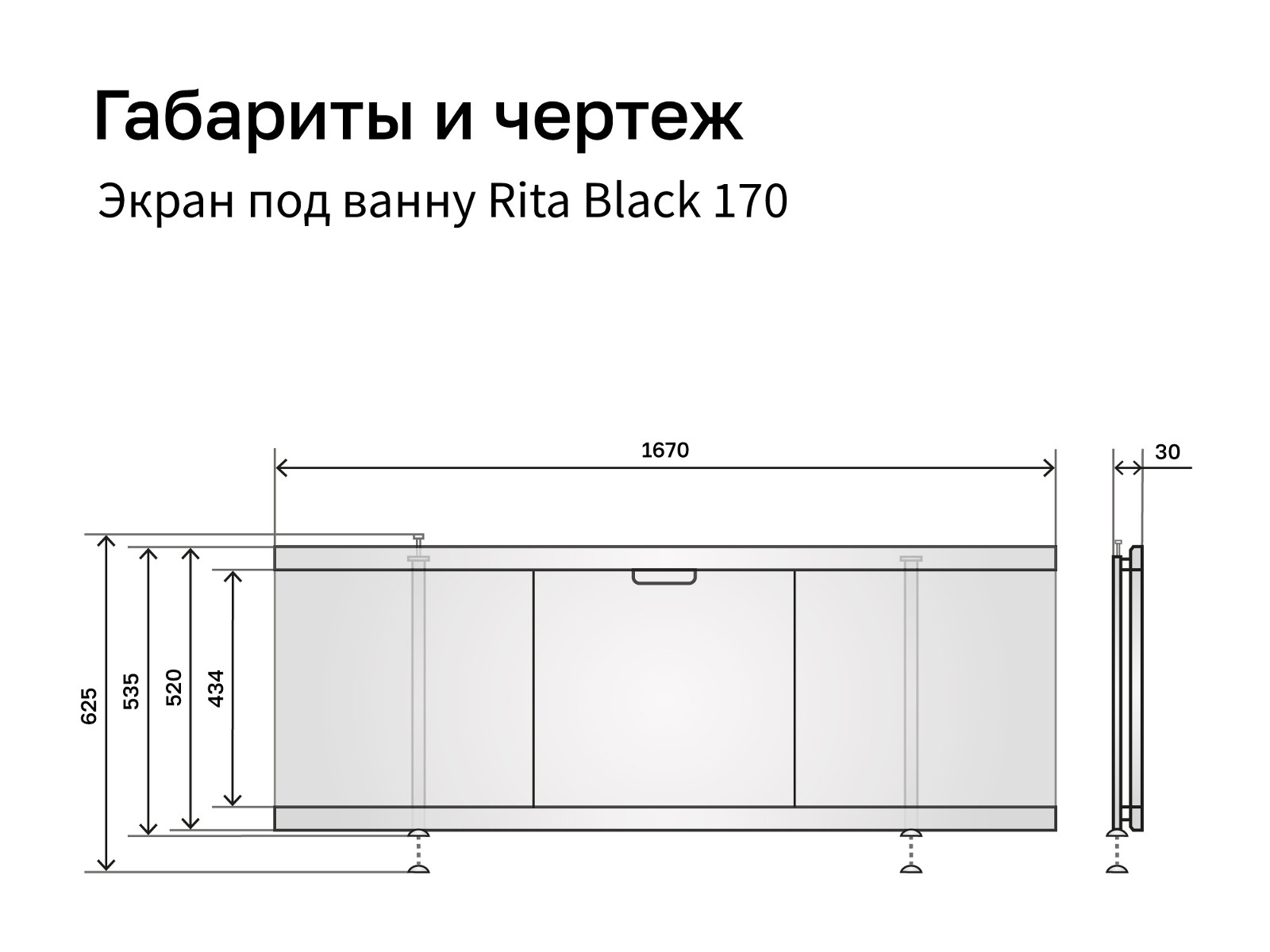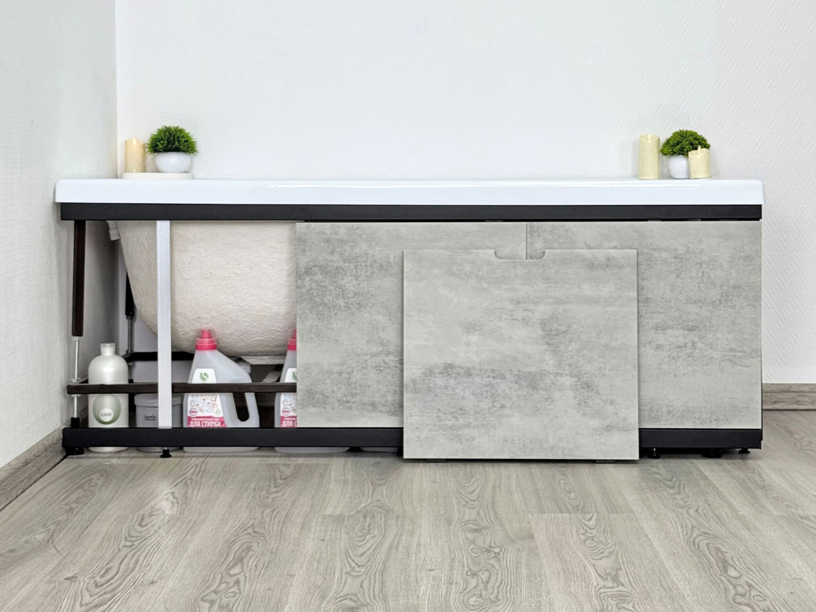 - Экран под ванну МДФ Rita Black 1700 мм серый бетон