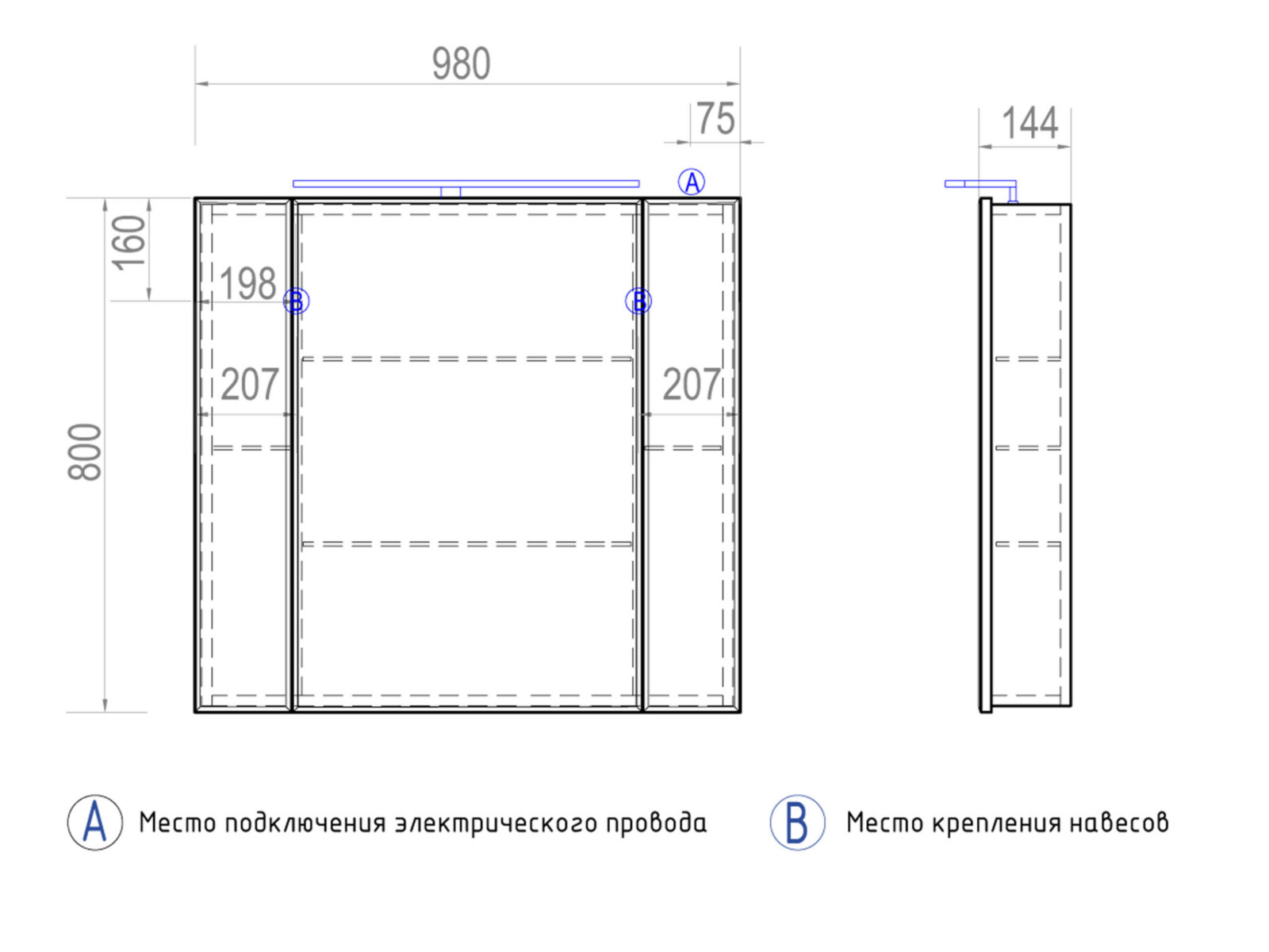 Размер: 980х144х800 мм