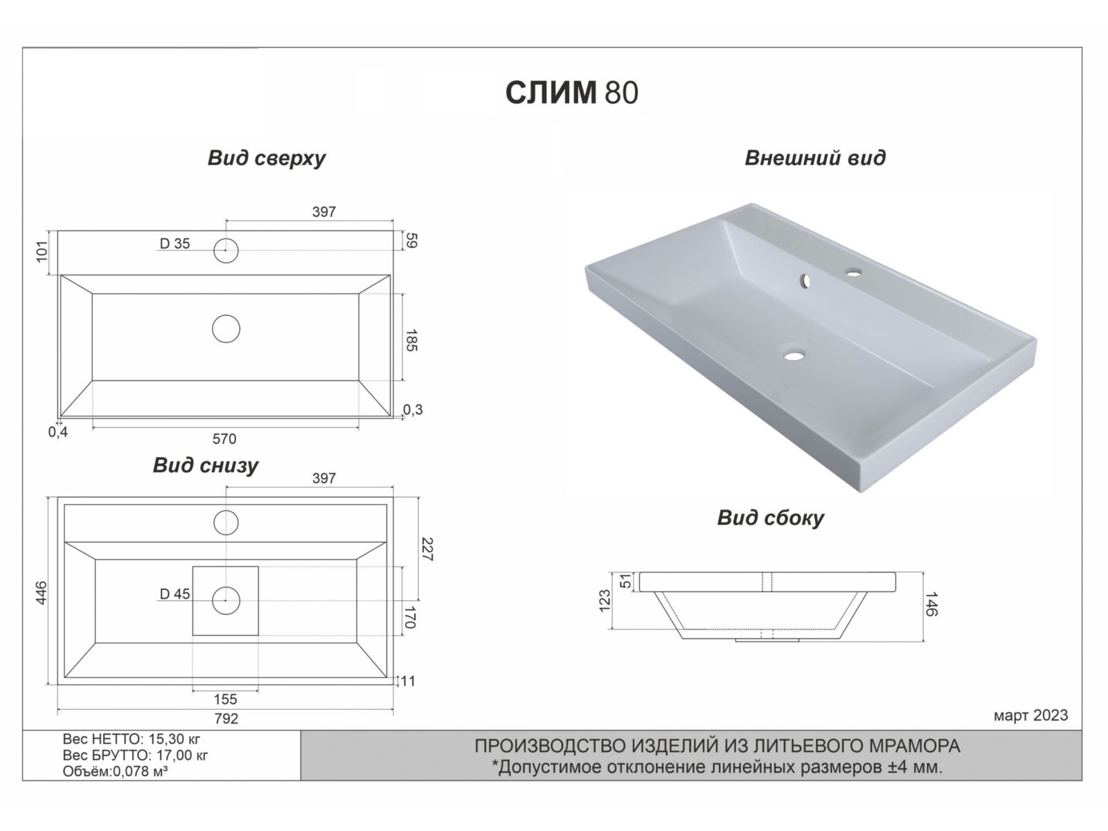 - Тумба Кристалл 80 напольная 2 ящика ручка дуб, раковина Слим 80 Суфле