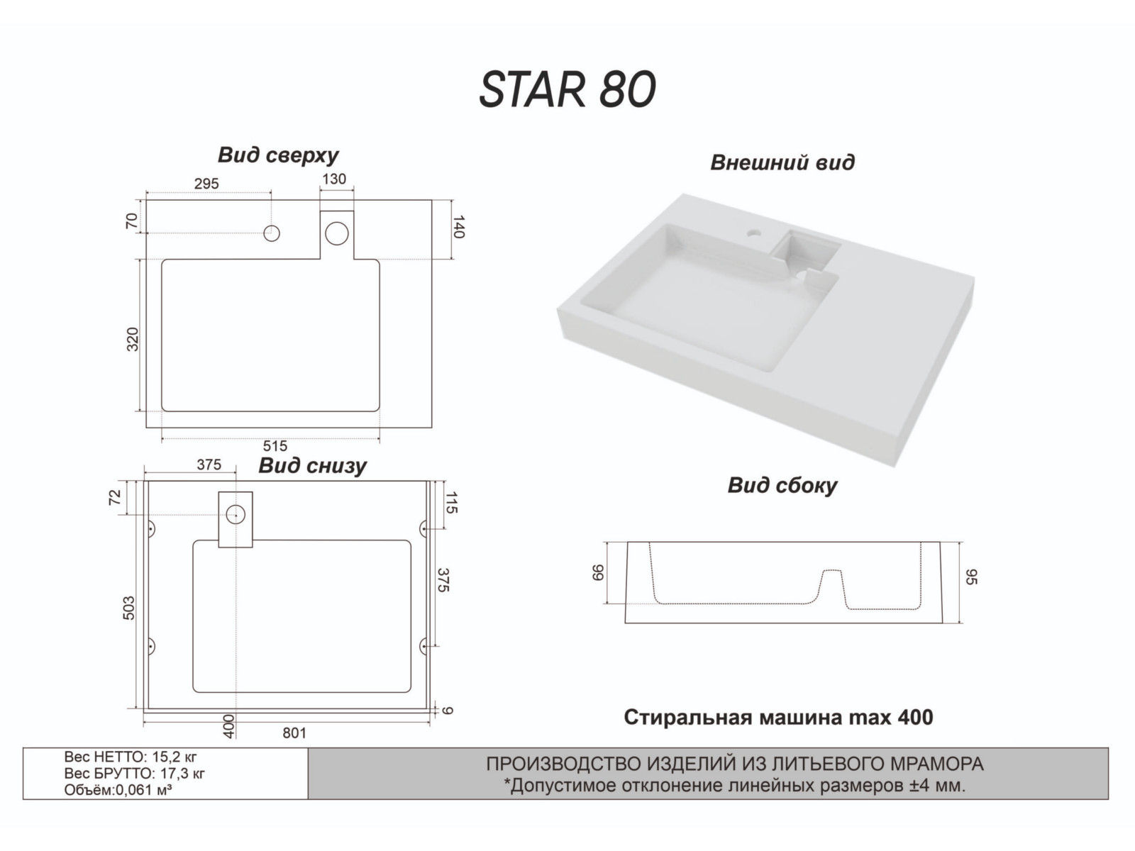 - Раковина Star 80 MySpace (Белый)+сифон