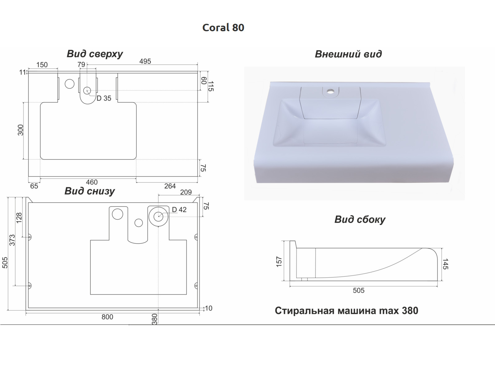 - Раковина Coral 80 MySpace (Белый)+сифон