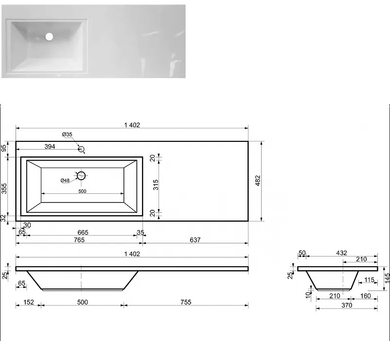 - Тумба с раковиной Dallas Luxe 1400 напольная 3 ящика левая