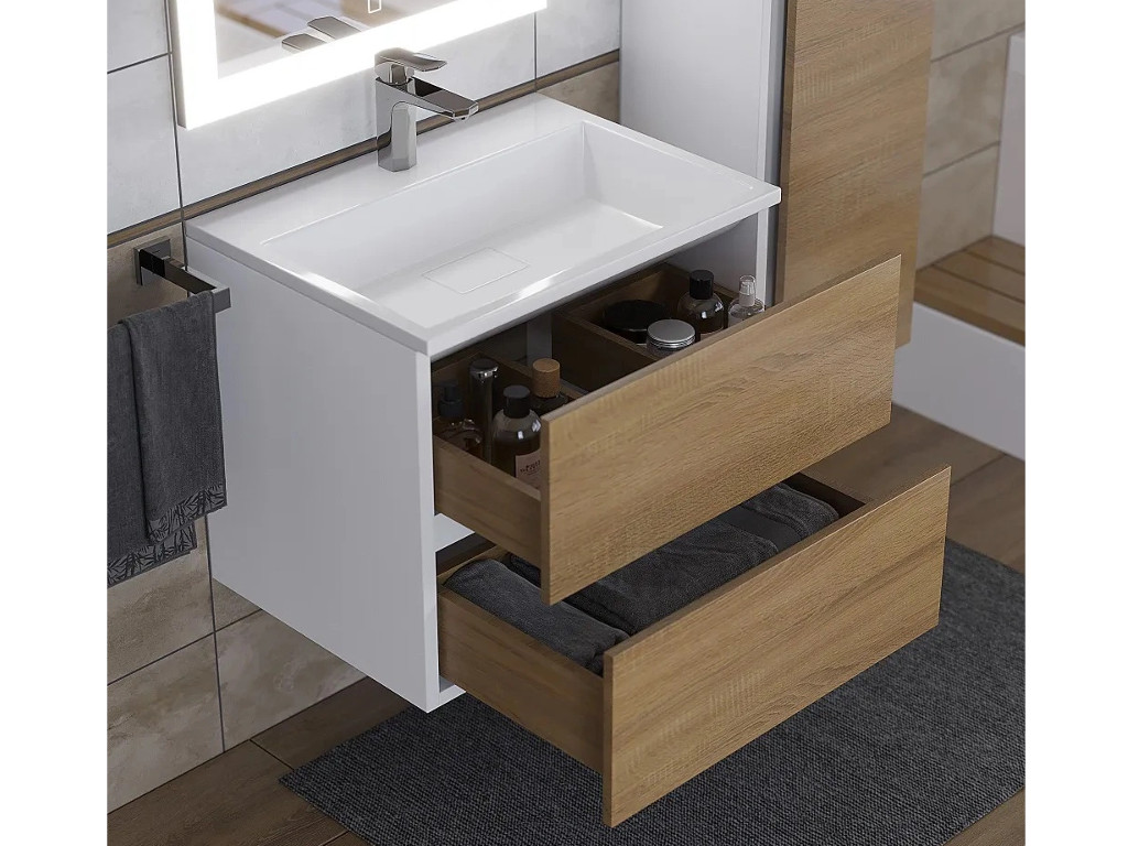 Тумба с раковиной Uperwood Barsa 60 см раковина белая-тумба белая/дуб сонома