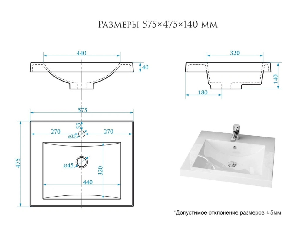 - Глубина (см) 47,5