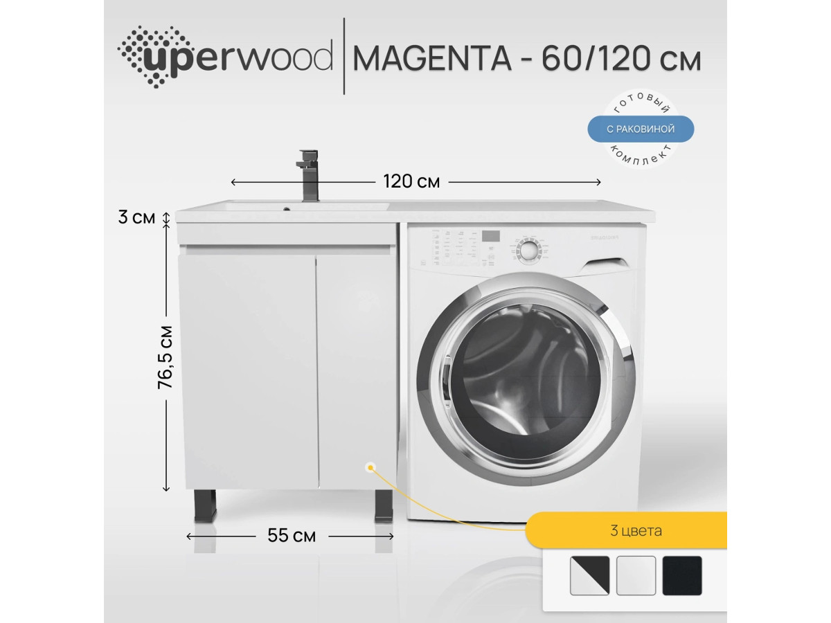 - Тумба с раковиной Uperwood Magenta 60-120 см напольная белая с дверцами левая