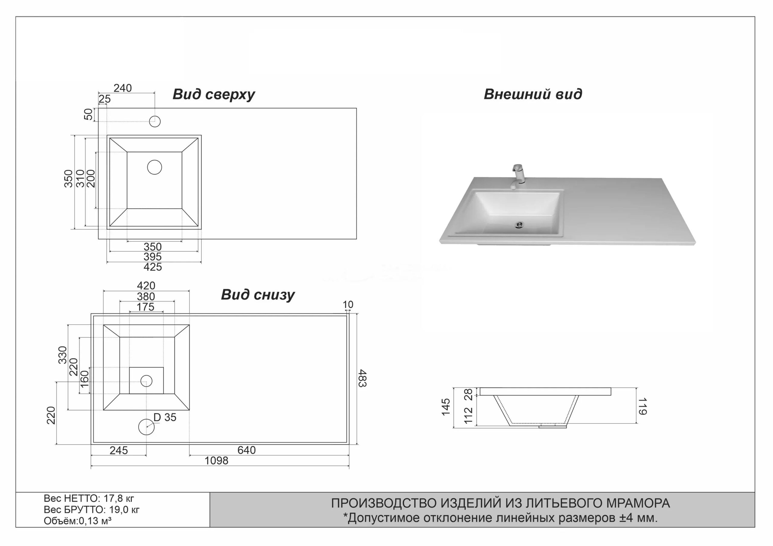 Размеры раковины: