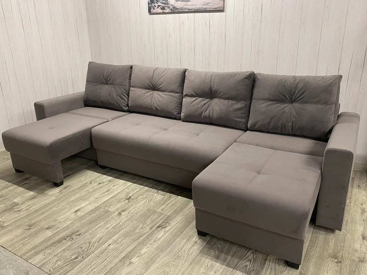 Декор: двойная строчка, утяжки. Четыре приспинные подушки и одна декоративная в комплекте.