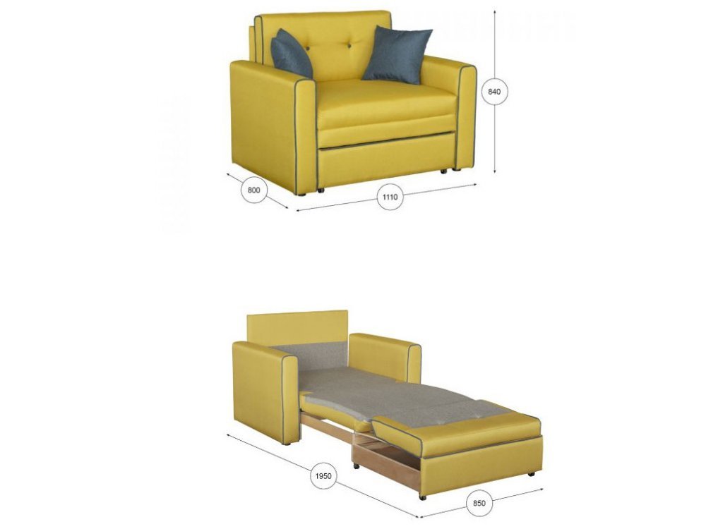 - сложенный: Д 1110 x Г 800, В 840 мм