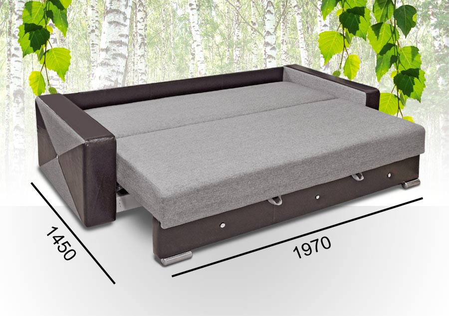 Размеры (Ш*В*Г): 2300*950*1040 ммРазмер спального места 1450*1970 мм