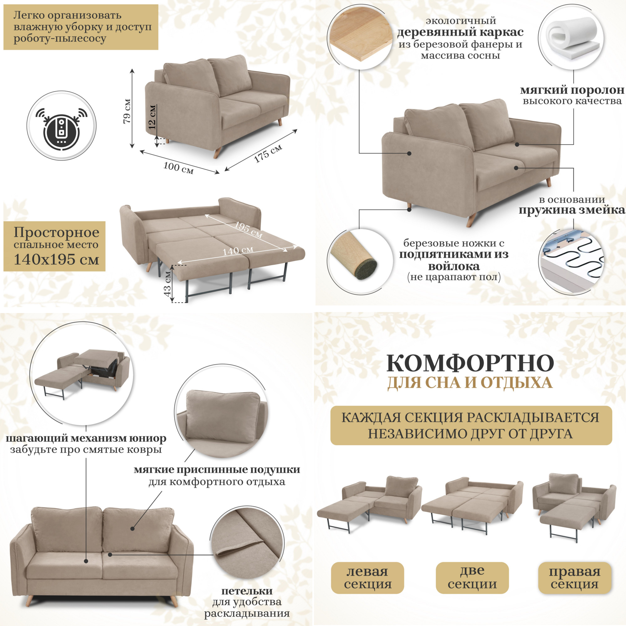 - Спальное место: 1400х1950мм