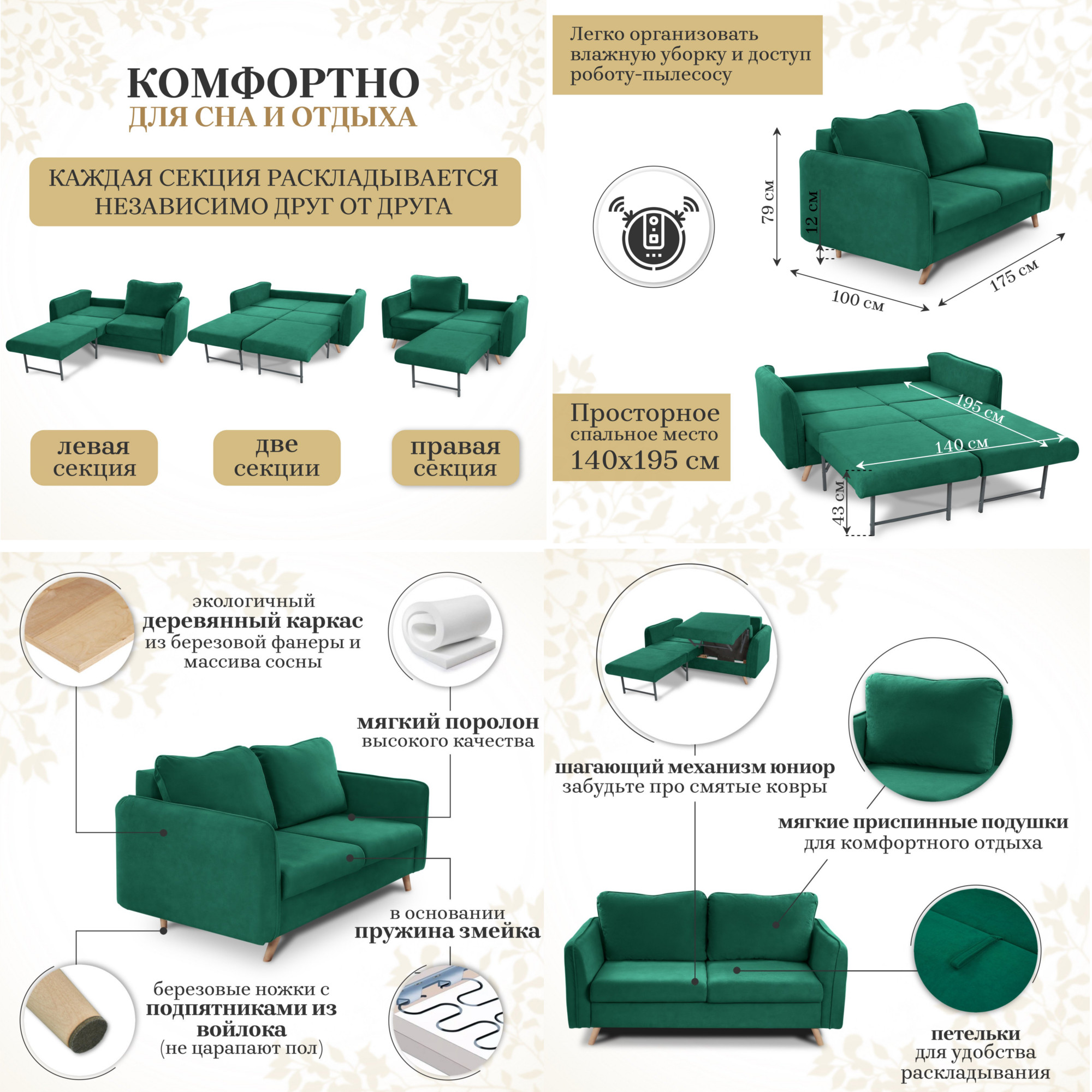 - Диван 4444 ткань Вивальди 11 изумрудный