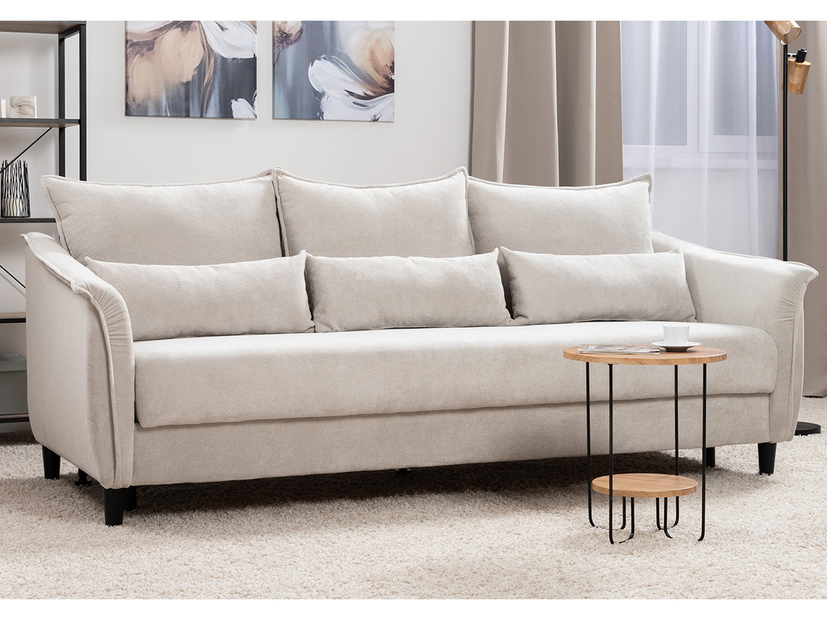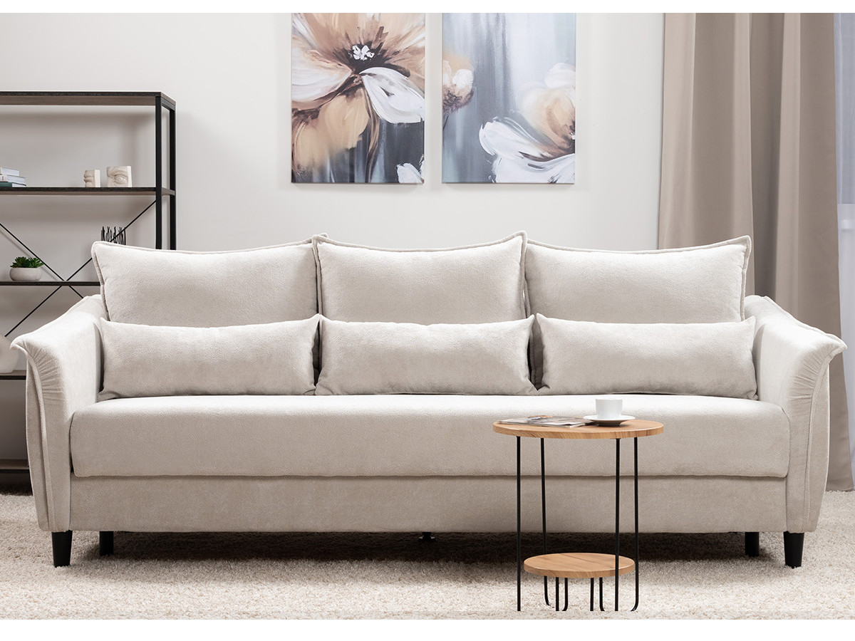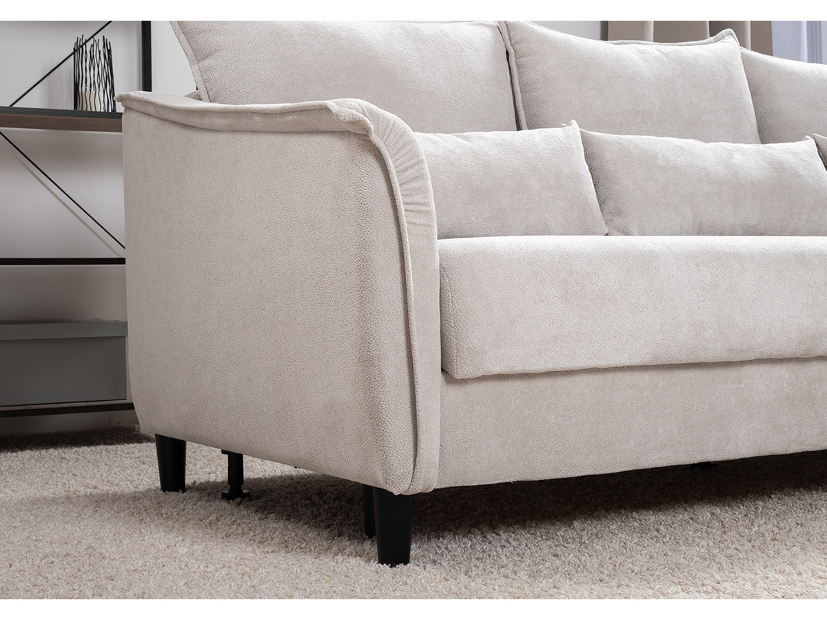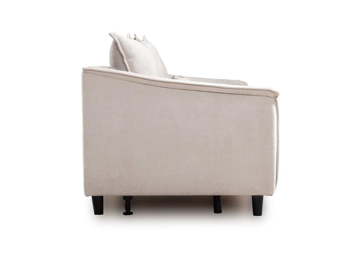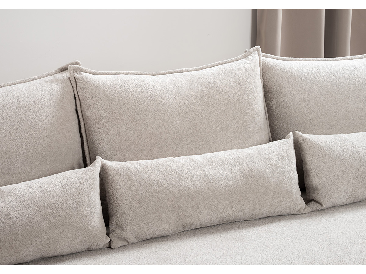 Спинка с тремя приспинными подушками. Две подушки трапецивидной формы, центральная квадратной формы на молнии, по трем сторонам которых проложена отделочная строчка на 1,2 см. По контуру боковин проложен декоративный кант на 1,2 см из основной ткани. Кант проходит по центру передней части боковины, а по внутренней верхней части сборка.