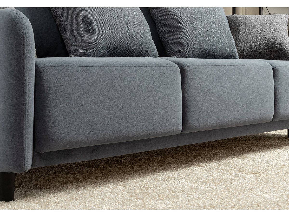 Декор: В комплекте 2 двусторонние декоративные подушки и 2 декоративные думки. Задняя спинка в ткани основы. Декоративные отделочные строчки по боковинам и сиденью