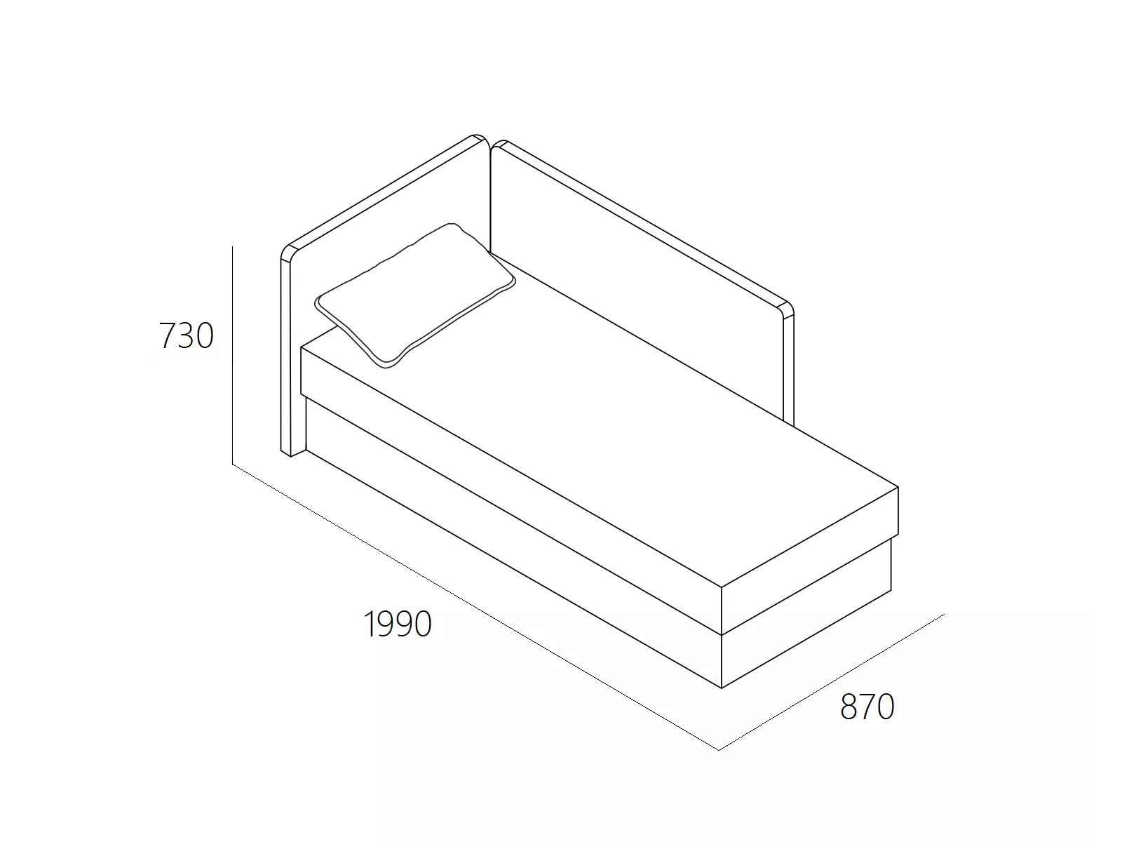 - Спальное место: 1950х810х465 мм