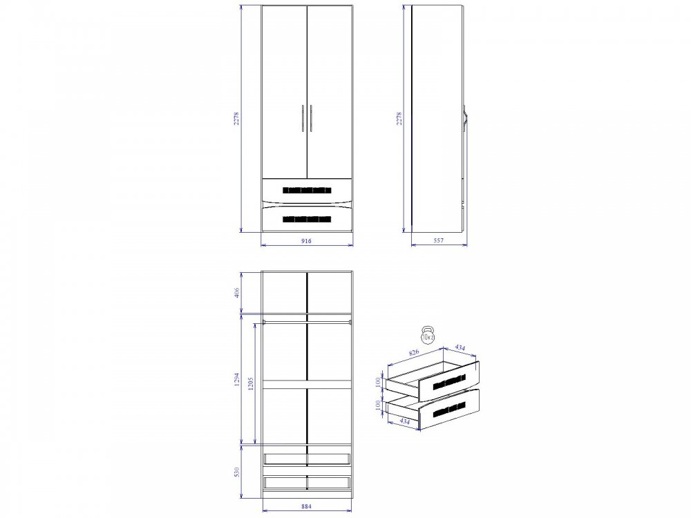 Размер: 916*544*2278 мм