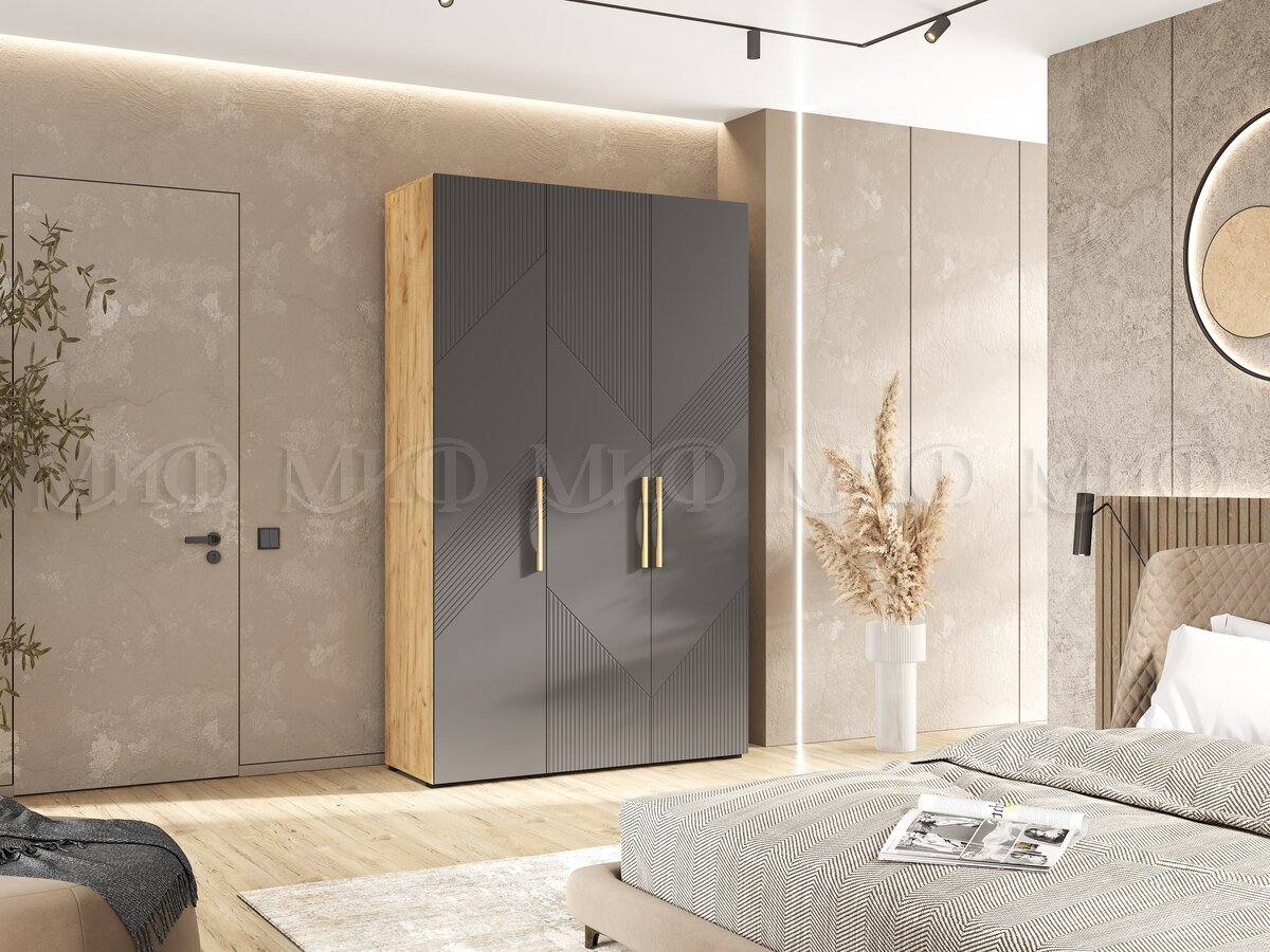- Шкаф 3-х створчатый (1350) Ирис Браш Графит, Дуб Крафт