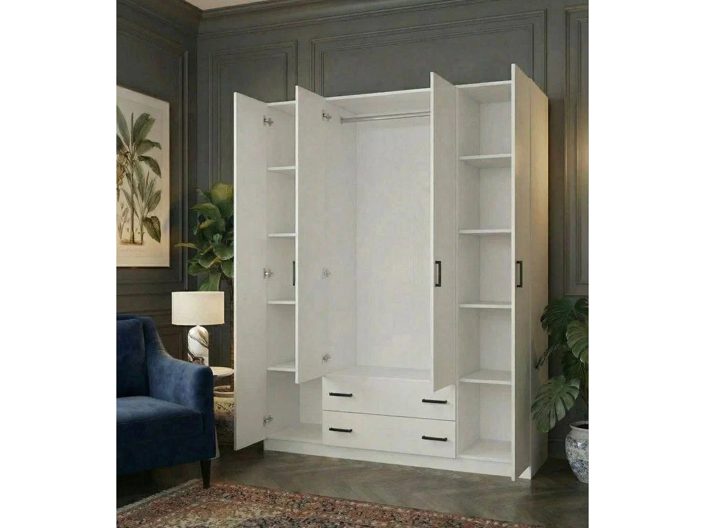 - Шкаф 4-хстворчатый с ящиками Турин белый