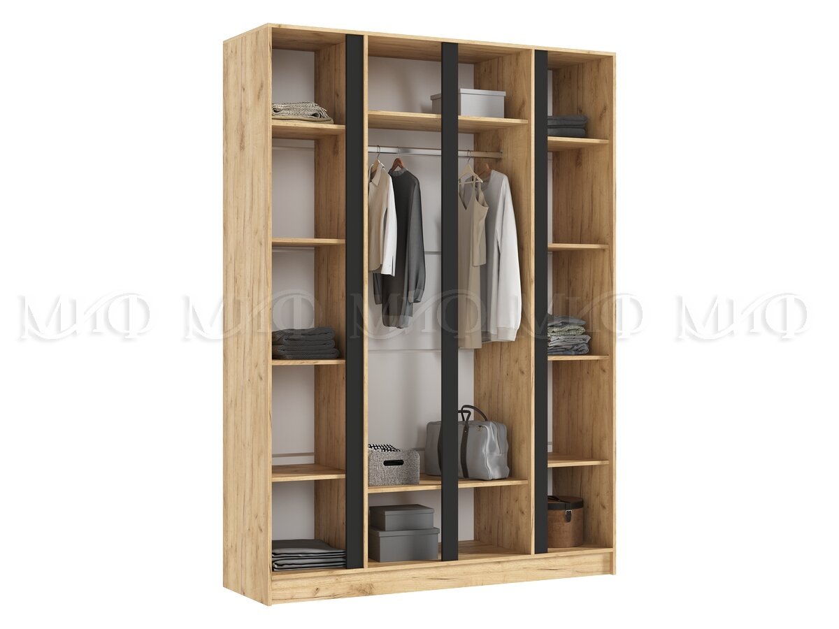 Шкаф четырехстворчатый Келвин (1600) Белый Глянец, Дуб Крафт-вставка черная