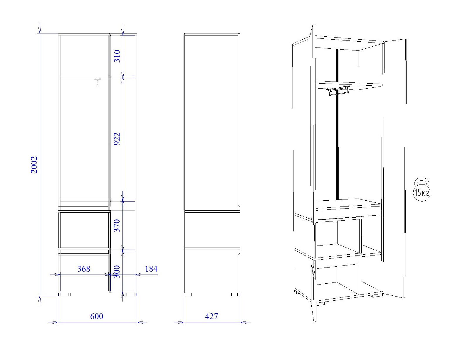Размер ШхГхВ: 600*427*2002 мм