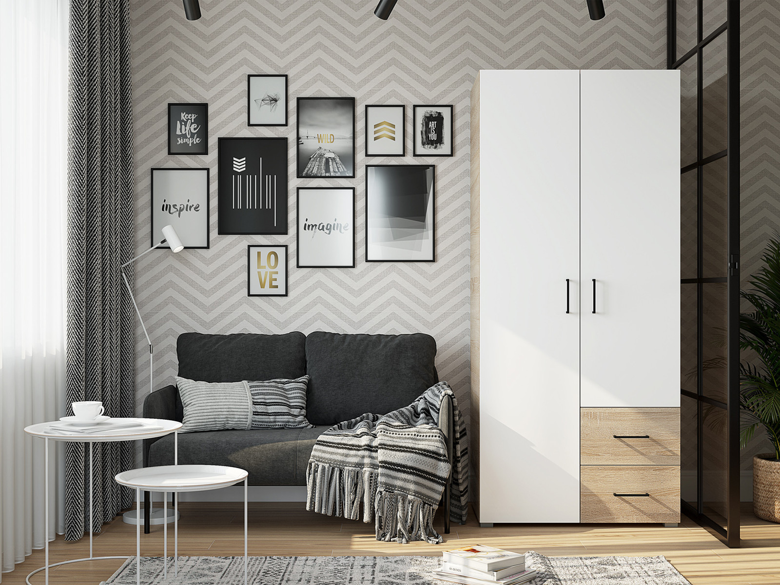 - Шкаф двухстворчатый 2 ящика Victor Сонома-Белый