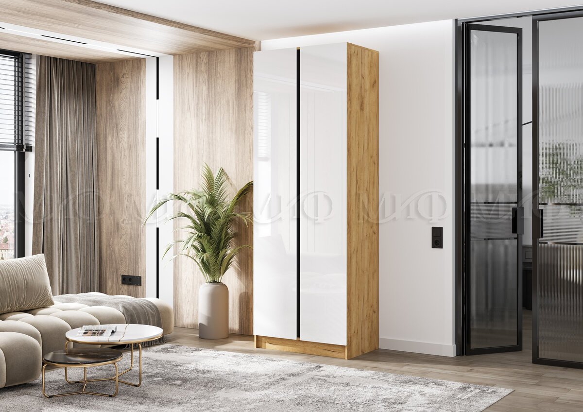 Шкаф двухстворчатый Келвин (800) Белый Глянец, Дуб Крафт-вставка черная