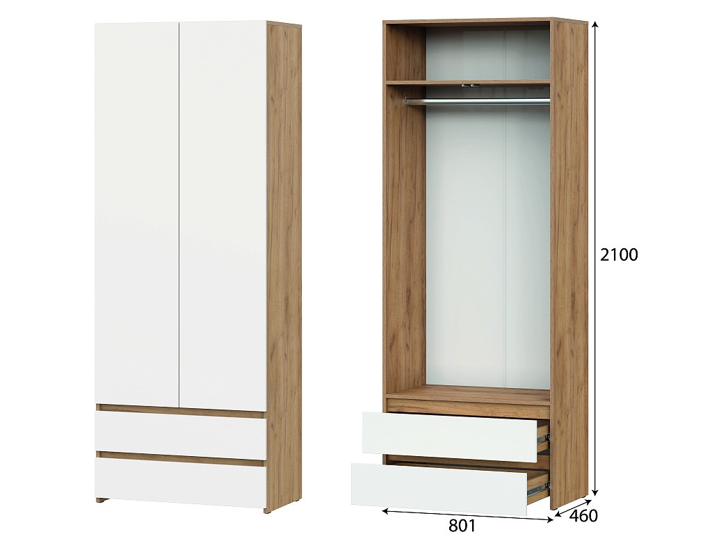 - Шкаф двухстворчатый с ящиками Некст 1 Дуб Золотой/Белый