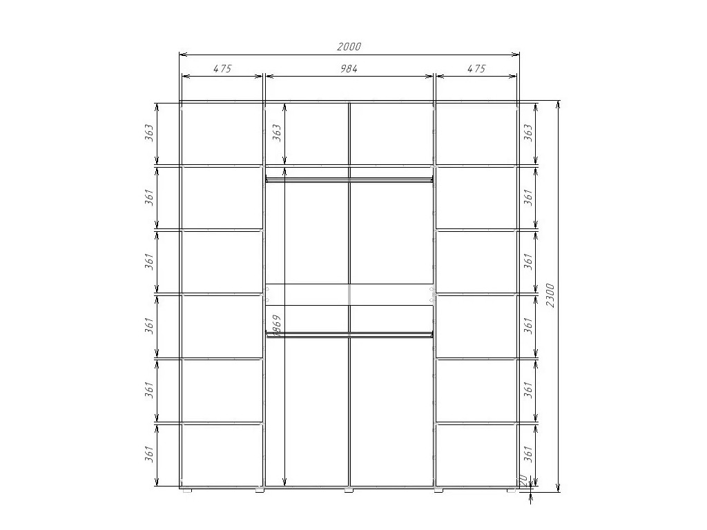 - Высота, мм: 2300