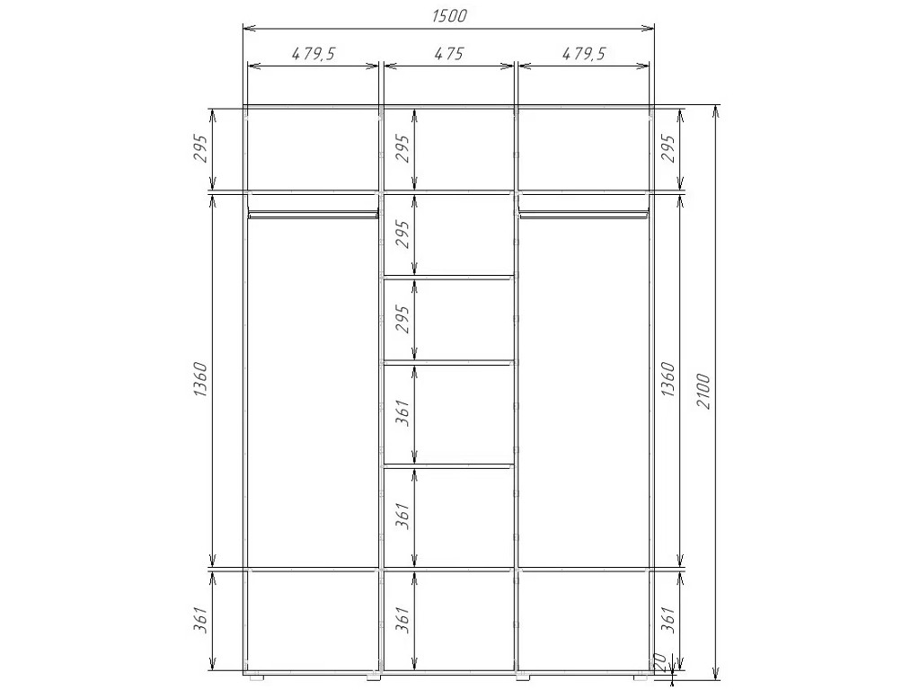 - Высота, мм: 2100