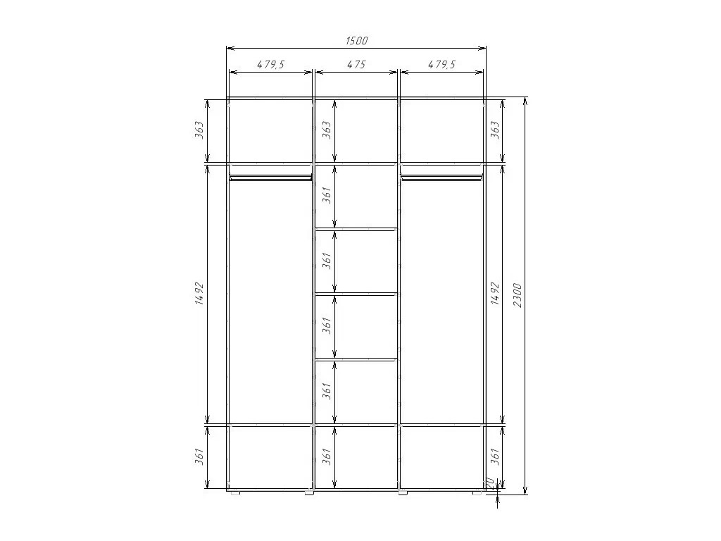 - Шкаф Гранд ГШК/3-23-15-111 (двери тип 1) с одним зеркалом