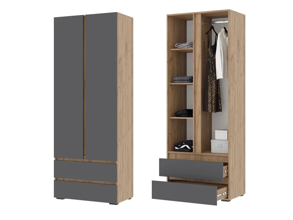 - Шкаф Хелен 2-х створчатый ШК 01 Дуб крафт золотой-Серый графит