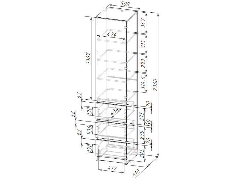 Габаритные размеры: Д.508 х В.2360 х Г.510 мм.