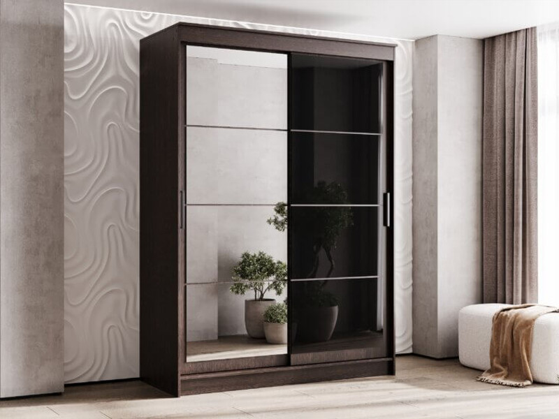 Шкаф-купе Гранд-1 1600 Дуб Венге-двери Зеркало-Лакобель черный