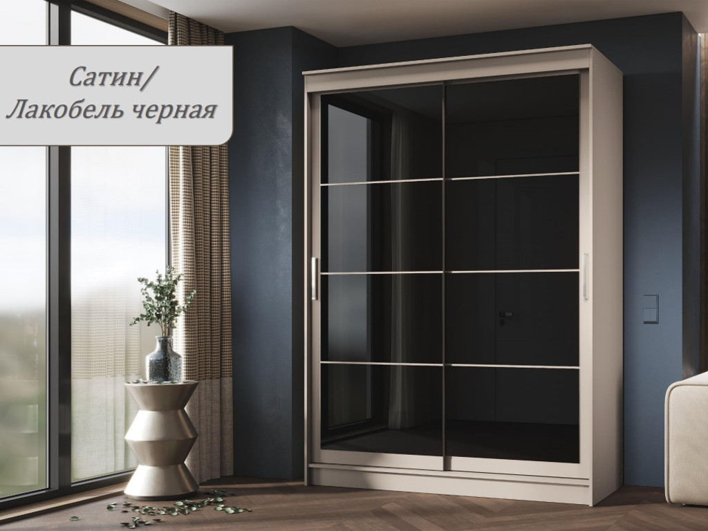 - Шкаф-купе Гранд-1 1600 Сатин-двери Лакобель черный