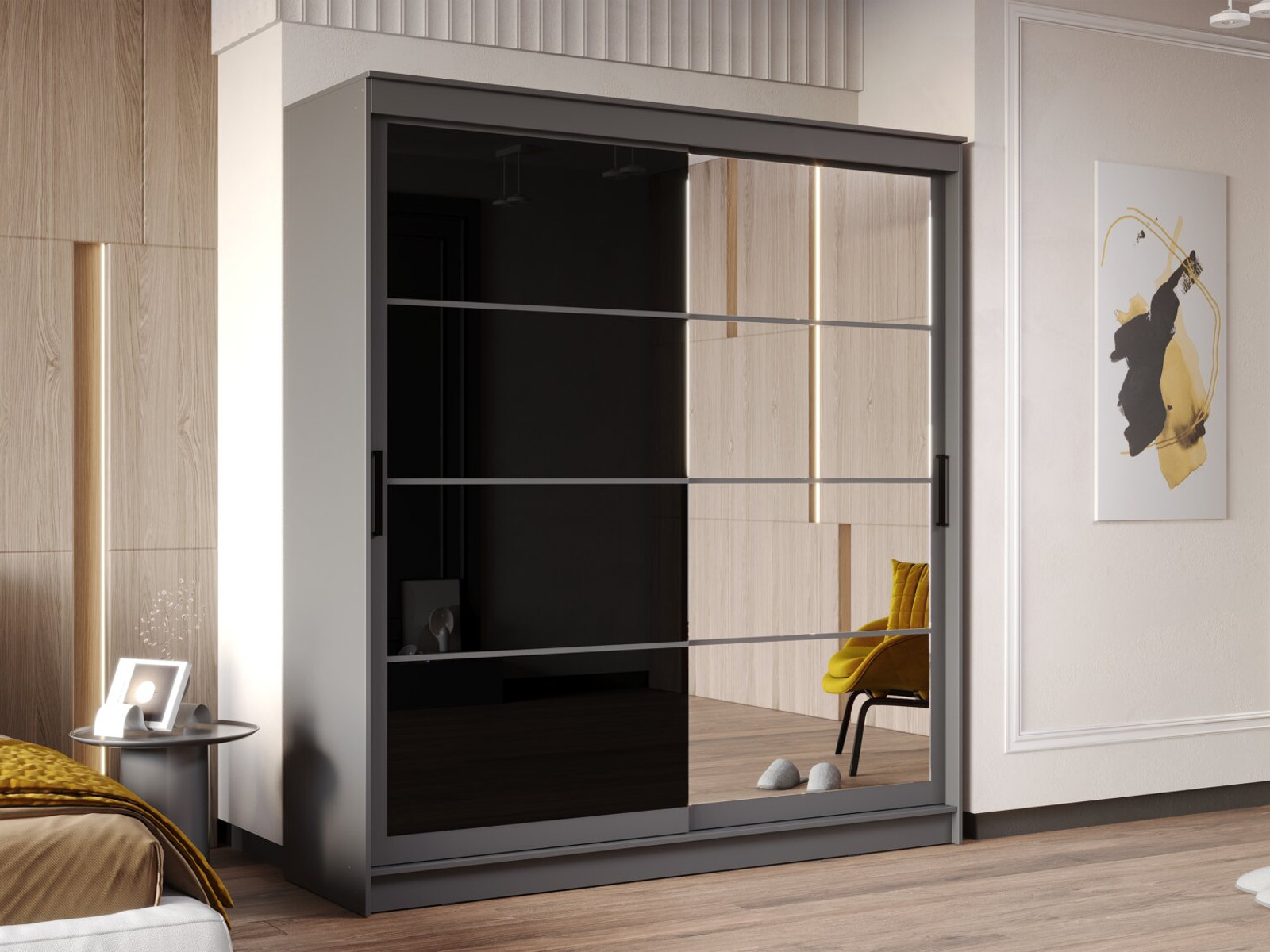 - Шкаф-купе Гранд-1 2000 Графит-двери Зеркало-Лакобель черный