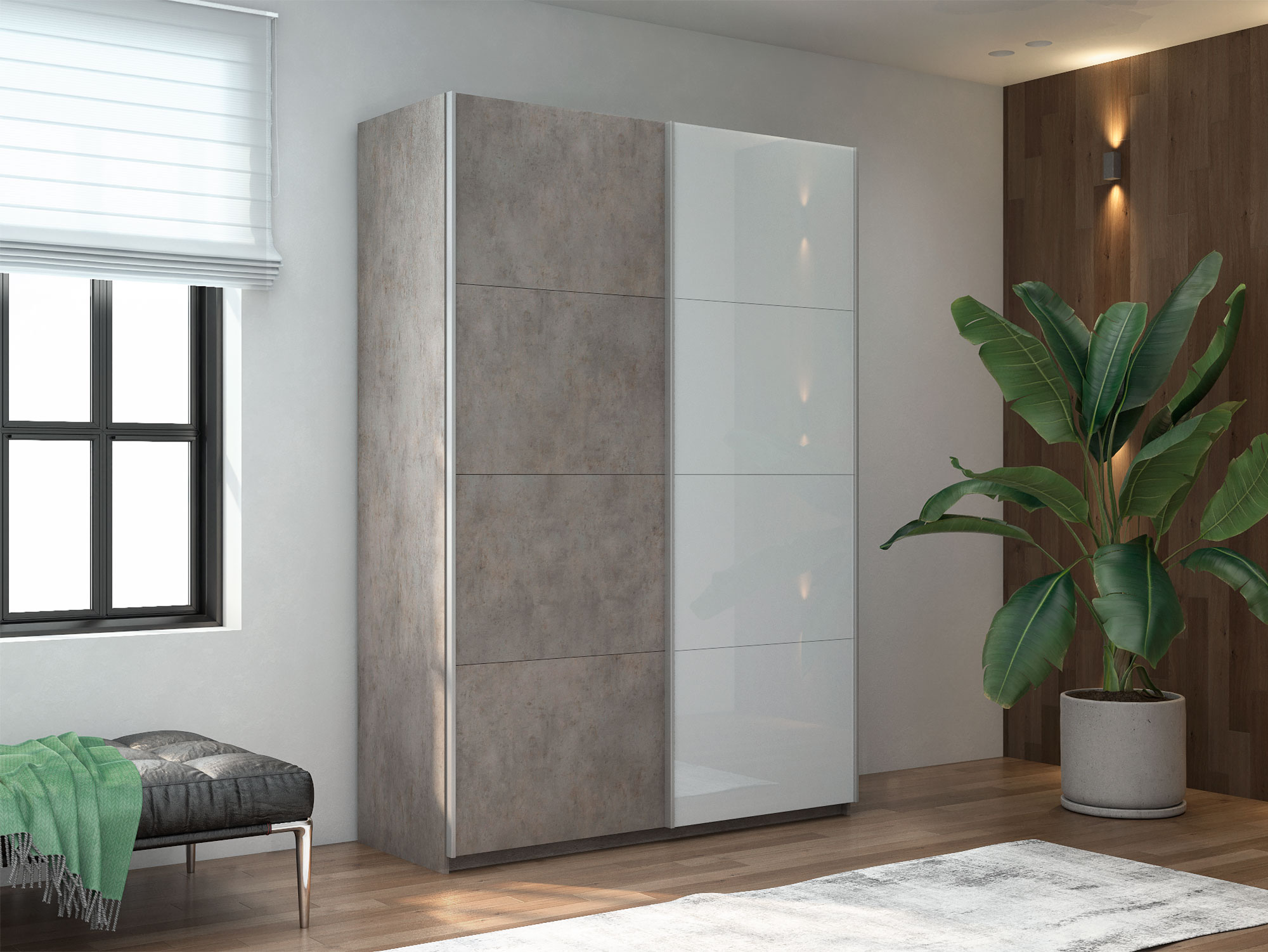 - Шкаф-купе Прайм 2-х дверный 1200 ДСП/Стекло Белое Бетон
